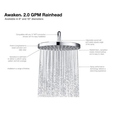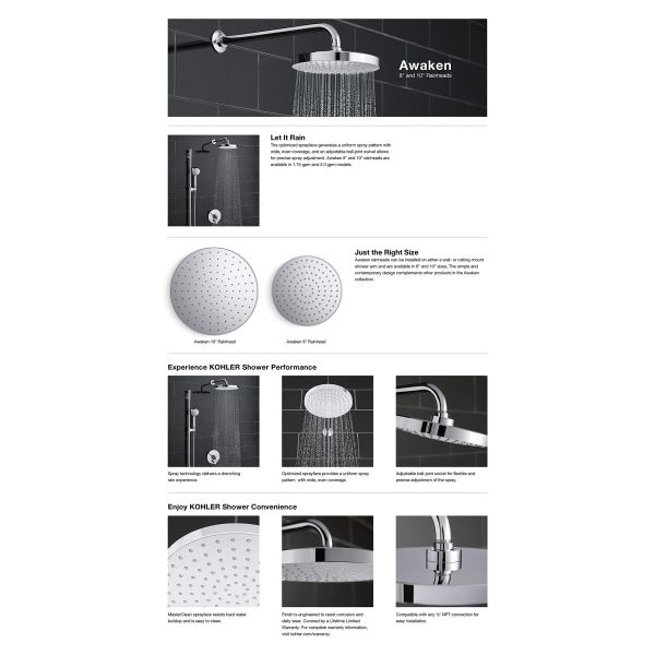 Key features of the KOHLER Awaken Rainhead Showerhead include: